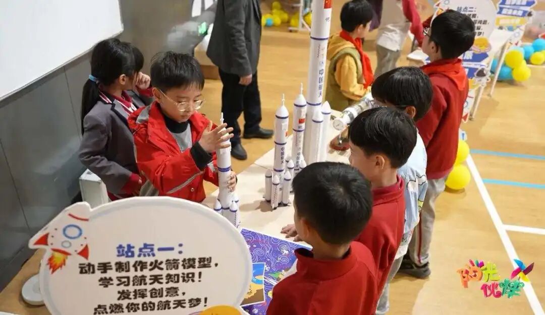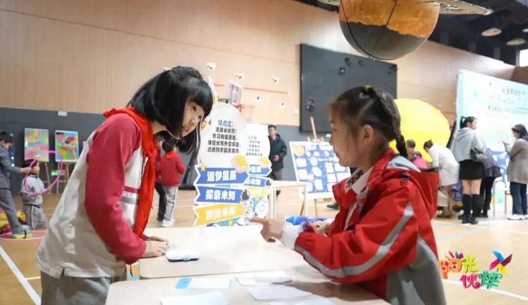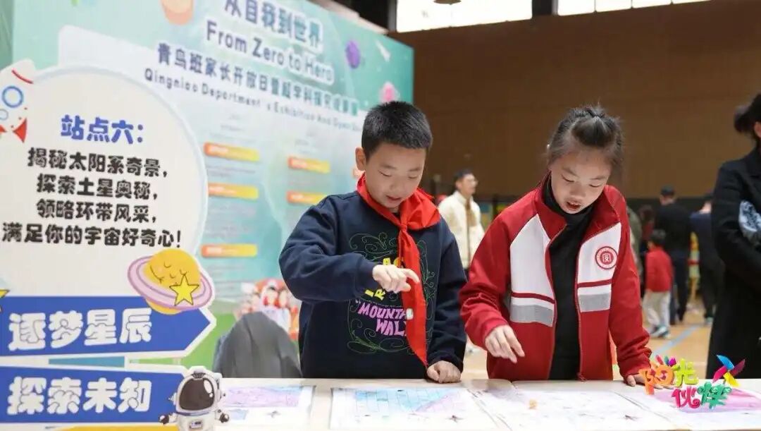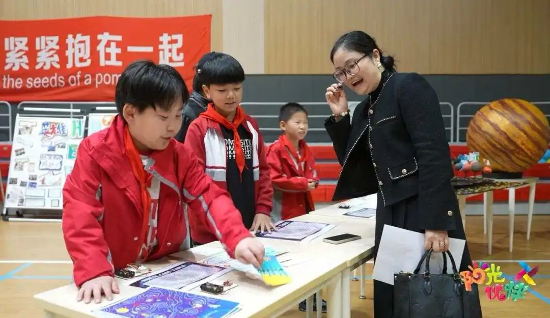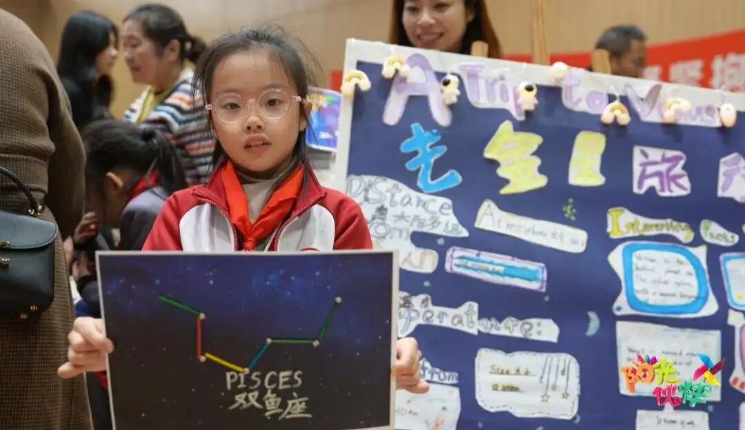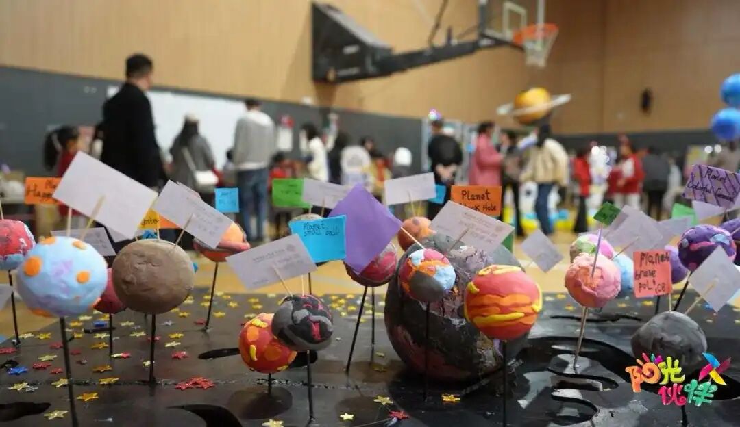 三年級以“星河浩瀚,童心探秘”為主題,探究了太陽系中的八大行星。水星、金星、火星、木星等,學(xué)生自制星系模型引得與會師生家長連聲贊嘆。展示現(xiàn)場,八大站點的互動體驗,更是將本次的主題探究成果展示的淋漓盡致。