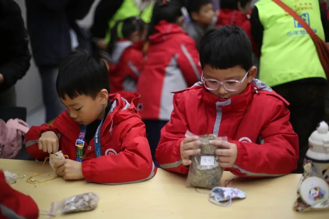 中醫(yī)館內(nèi),孩子們搖身一變,成為了小小“中醫(yī)探索者”,手持精心準(zhǔn)備的記錄表,滿懷熱情地探尋中醫(yī)藥的無窮奧秘。他們緊緊圍繞著講解員,好奇地觀察著那些看似平凡無奇的動植物,細(xì)細(xì)品味著它們獨(dú)特的芬芳,深切感受著古代先人的智慧與中醫(yī)文化的深邃廣博。最后孩子們利用各種中草藥制作了香囊。小小的香囊里裝滿了薰衣草,丁香,艾葉,薄荷等孩子們喜歡和熟悉的草藥,讓整個(gè)研學(xué)教室充滿了淡淡的藥草香。這一場探索之旅,在孩子們幼小的心靈里悄然播下了知識的種子,靜待未來的萌芽與成長。